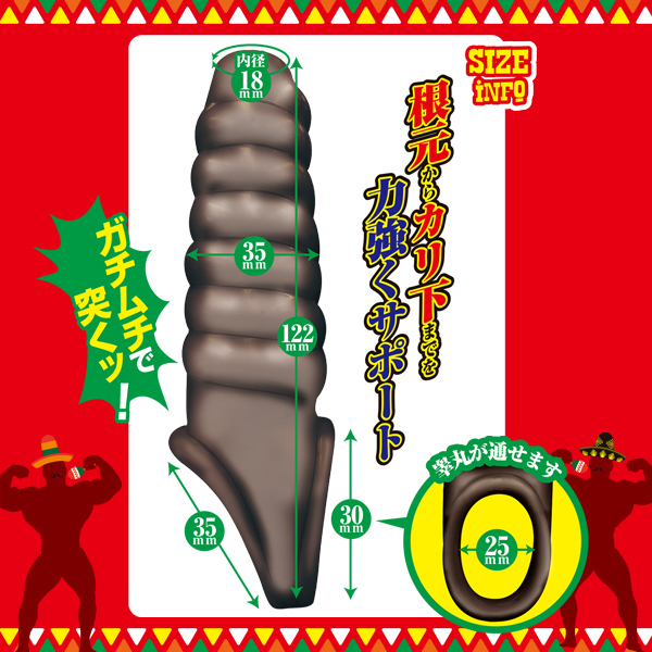 サイズ/仕様:パッケージ:16.5×5.0×5.0cm 本体:全長12.2cm・最大径3.5cm・亀頭露出穴内径1.8cm・睾丸装着穴内径2.5cm
