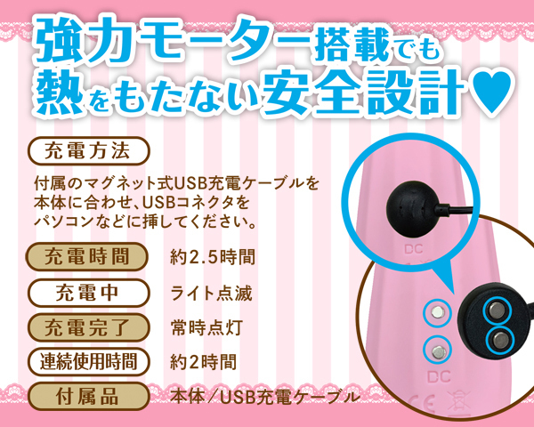サイズ/仕様:パッケージ:28.0×8.0×5.3cm 本体:全長21.0cm・ヘッド径5.0cm セット内容:本体、充電ケーブル USB充電式