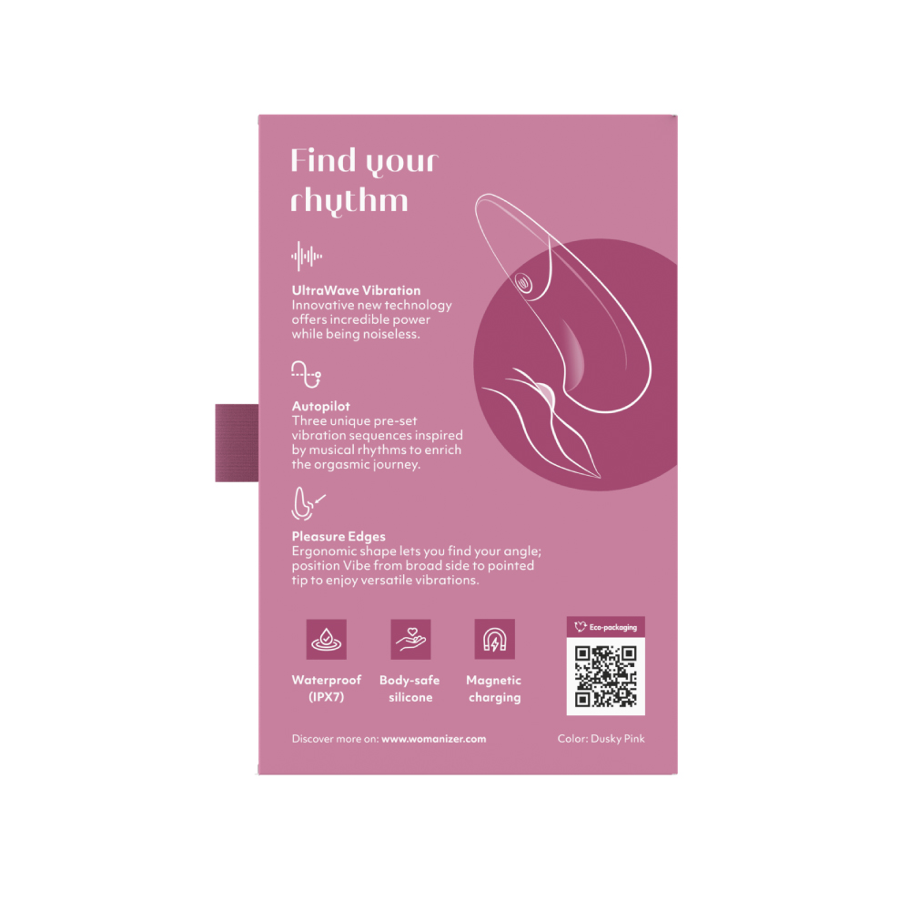 ウーマナイザー初の電動マッサージャーが登場しました♪革新的な「ウルトラウェーブバイブレーション」技術を採用し、やさしく心地よい振動を実現しました!モーターの上下運動によって生まれる独自の刺激構造が特長です♪振動は10段階で調整可能なのでお好みに合わせて自由に使えます!オートパイロットモードも3種類搭載しており気分に合わせた使い分けができます♪コンパクトな形状とエルゴノミックデザインで持ちやすく使いやすさにもこだわりました!完全防水仕様(IPX7)でお風呂でも安心して使用できます♪肌にやさしいシリコン素材を採用し静音性にも優れているので周囲を気にせず使えます!USB充電式で最大90分の連続使用が可能♪自分のペースで心地よいひとときをお楽しみいただけます!