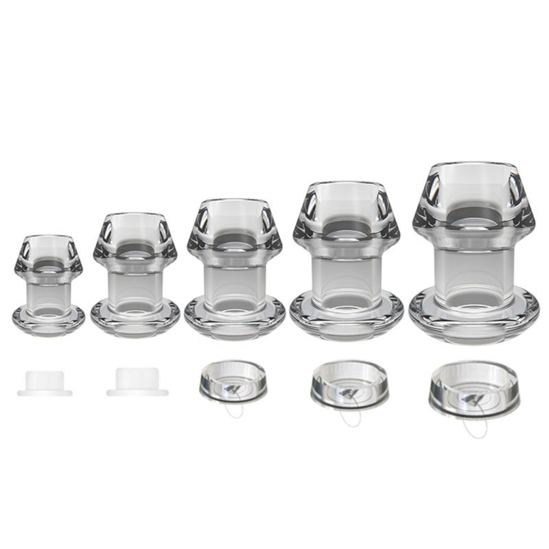 SMVIPトンネルプラグ(S)は、安定感のあるデザインで、安心して使用できる中空タイプのプラグです♪先端が丸い台形の形状で、挿入時にしっかりとフィットし、抜けにくい構造になっています!透明な素材を使用しているため、内部が確認でき、さまざまなアイデアで楽しめる設計♪キャップが付属しており、ストッパーとしても使用可能です!キャップを締めた状態で外出したり、液体を注入するプレイにも対応♪柔らかく耐久性のあるエラストマー素材を採用し、使いやすさと安全性を両立しています!SサイズからXXLサイズまでの幅広いラインナップがあり、目的に応じた選択が可能です♪多様なプレイをサポートするこのトンネルプラグは、自由な発想で楽しめるアイテムです!