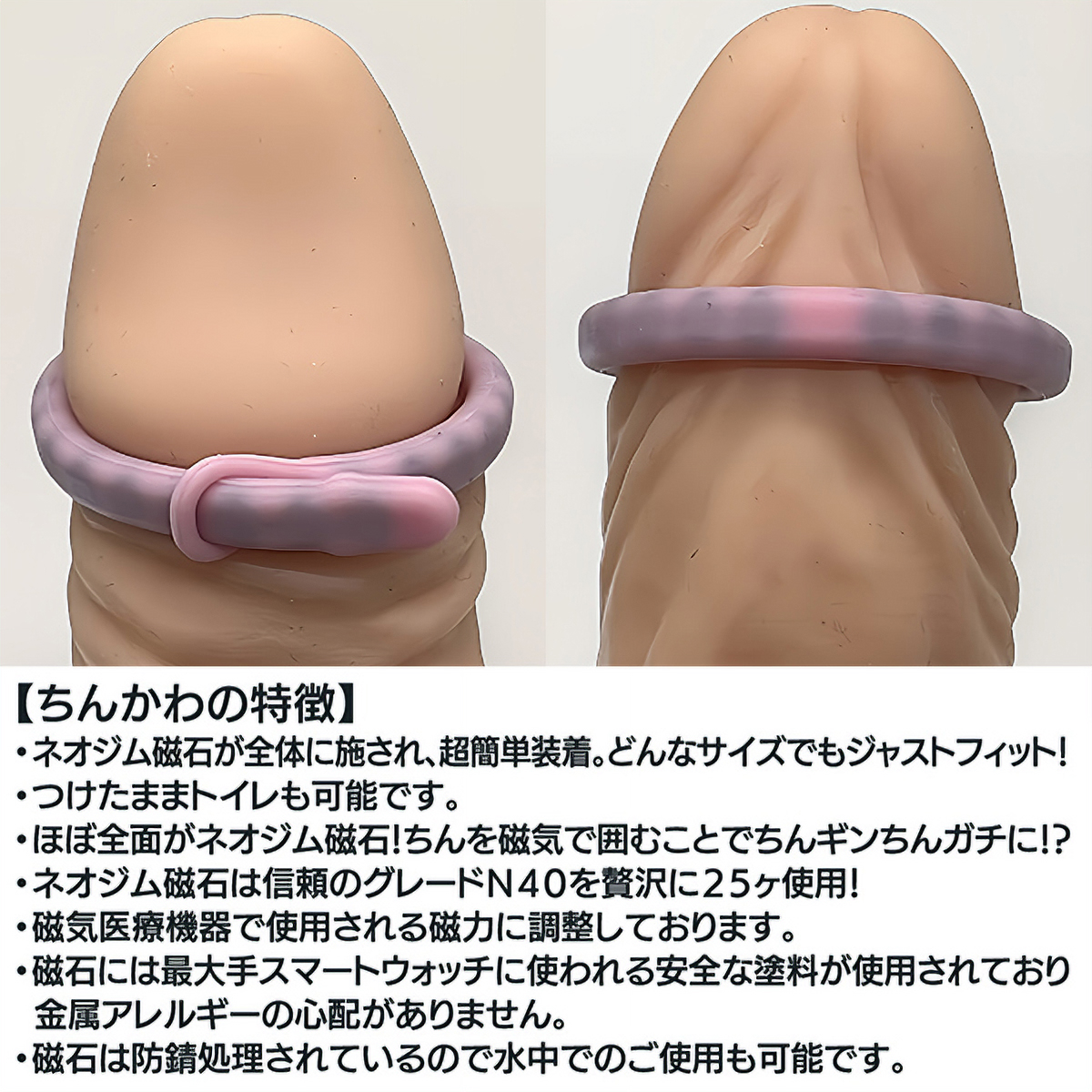 「ちんかわ」は、ネオジム磁石を使用した全方位型の包茎矯正ベルトです!どんなサイズにもフィットし、長時間の着用でも快適に過ごせます。 水洗いもOKで、衛生面も安心♪ちんのかわがかぶらないようにしっかりサポートし、あなたの自信を取り戻します。 保管に便利なケースも付いているので、外出先でも安心して持ち運べます♪